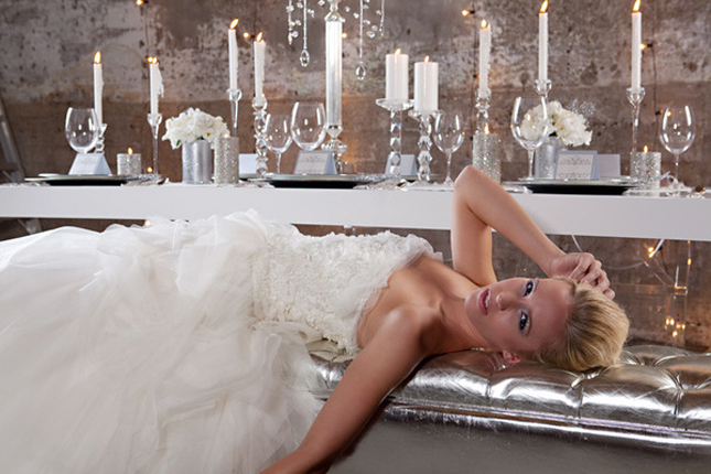 Photography: Scott Lawrence Photography / Venue: Culy Warehouse / Furniture: Lounge Appeal / Rentals: Raphaels / Florist: Trendee Flowers / Gowns: Bliss Bride / Paper Goods: Paper Scissors Print / Makeup & Hair: Foxi Lady Makeup and Hair by Kristen Brown / Coordination and Design: Couture Events / via SMP